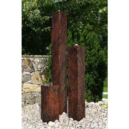 Gartenbrunnen 3 Säulen Aurora Q10SET bestehend aus drei in der Höhe abgestuften massiven Granitsäulen 10x10cm - Höhe 30/60/90cm.