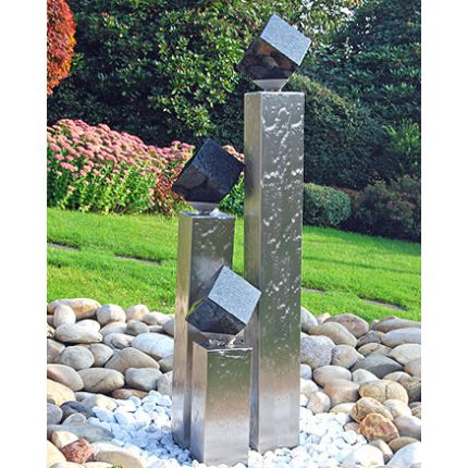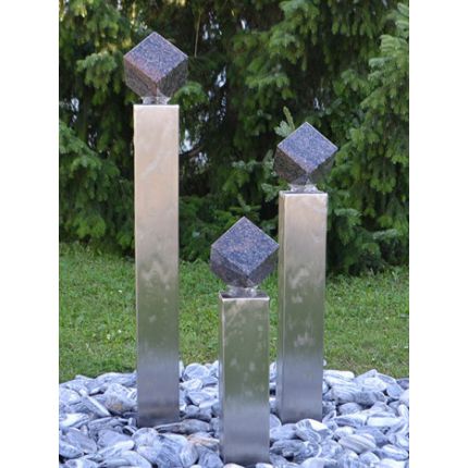 Edelstahl Gartenbrunnen Dresden 3er SET 140S15Edelstahlbrunnen Dresden 3er SET mit einer Höhe 60,100 und 140cm inkl. Granitwürfel 15x15cm
