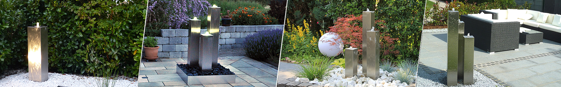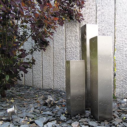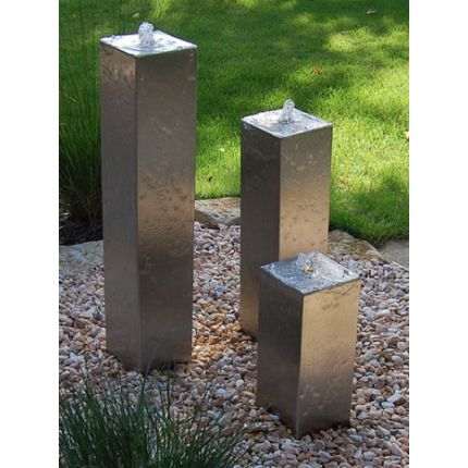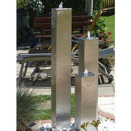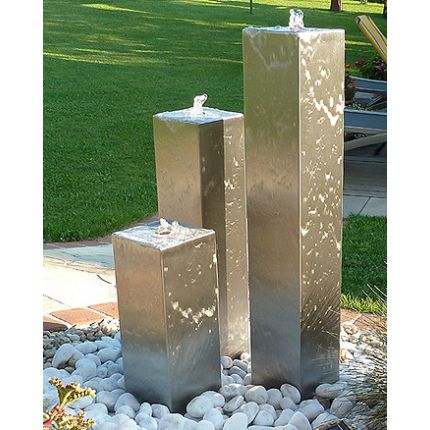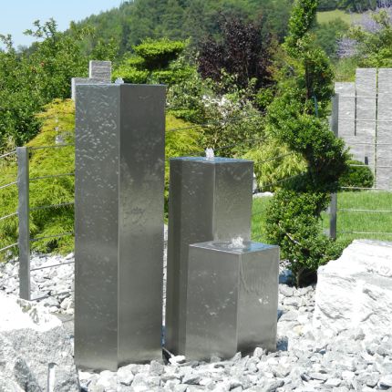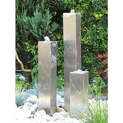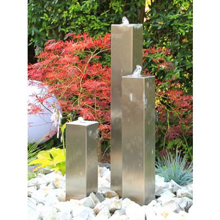Edelstahl Gartenbrunnen Hamburg 3er SET 80S15Komplettbrunnen 3 Edelstahlsäulen V4A Material 15x15cm, Höhen 40/60/80 cm