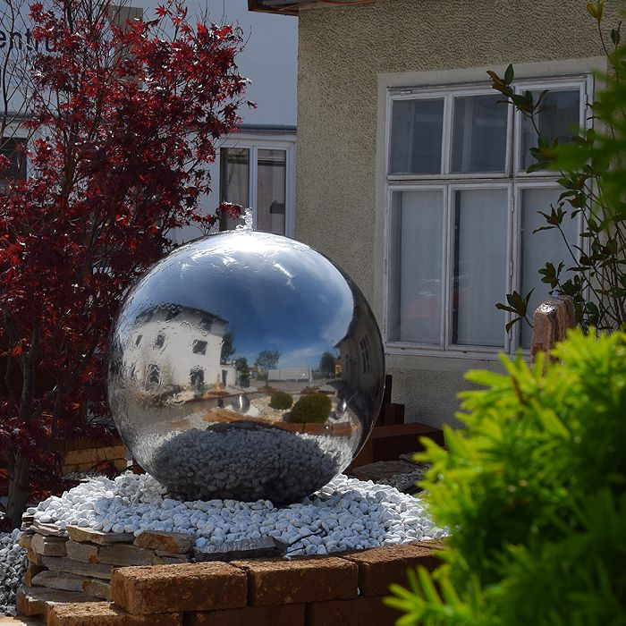Glanzvoller Gartenbrunnen bestehend aus einer 100cm großen Edelstahl-Quellkugel mit einem zentralen Wasseraustritt. Der austretende Wasserstahl mit einer optionalen Quellbeleuchtung ausgestattet werden. Sie erwerben einen Gartenbrunnen als Komplettset, der unkompliziert mit wenigen Handgriffen installiert wird.