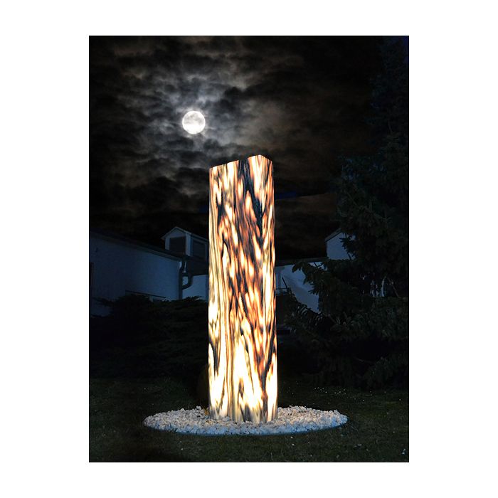 Erleben Sie zeitlose Eleganz und österreichische Handwerkskunst in Perfektion. Der Sölker Marmor Lichtbrunnen besticht durch seine geschliffene Oberfläche, die im Zusammenspiel mit dem fließenden Wasser eine faszinierende, glänzende Optik erzeugt – von Innen beleuchtet, bring der kristalline Marmor einzigartige Lichteffekte in den Abendstunden hervor - ein sensationeller Blickfang. Der Wasserkörper wird in hochwertiger Leichtbauweise gefertigt: Nur 1 cm starke, präzise verklebte Steinplatten bilden eine stabile, hohle Säule, die lediglich rund 15 % des Gewichts eines massiven Steinblocks aufweist. Das erleichtert Transport und Aufstellung – ohne Kompromisse bei Stabilität oder Qualität.