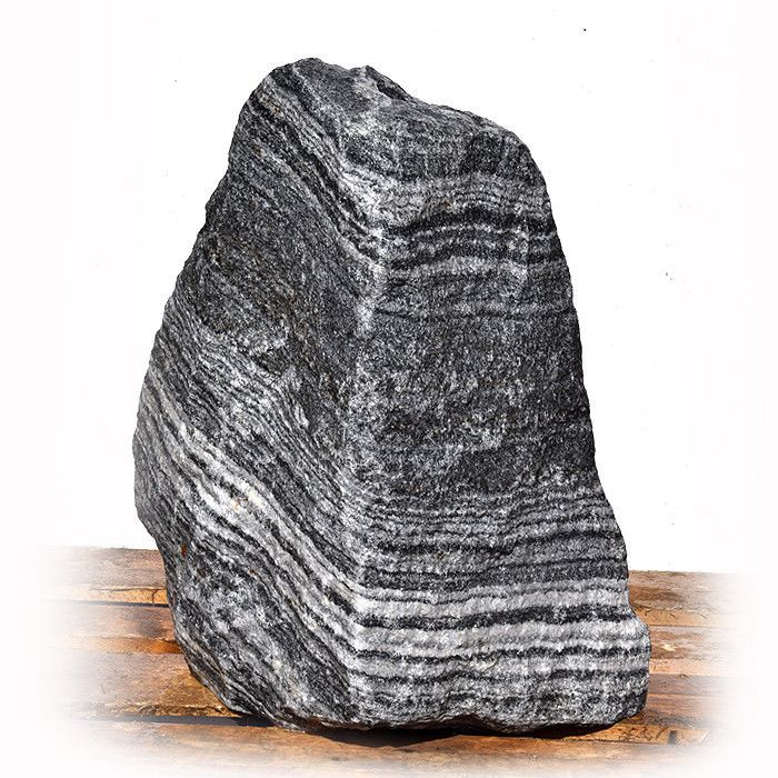Wachauer Marmorist ein kristalliner Marmor, hat eine hell bis dunkel graublau gewolkte oder gestreifte Struktur, ist sehr dekorativ und durch seine Frostbeständigkeit besonders auch für die Anwendung im Außenbereich hervorragend geeignet. Die Farbnuancierung, die immer ein bisschen anders ausfällt, macht jeden Quellstein und Findling aus Wachauer Marmor zu einem Unikat.