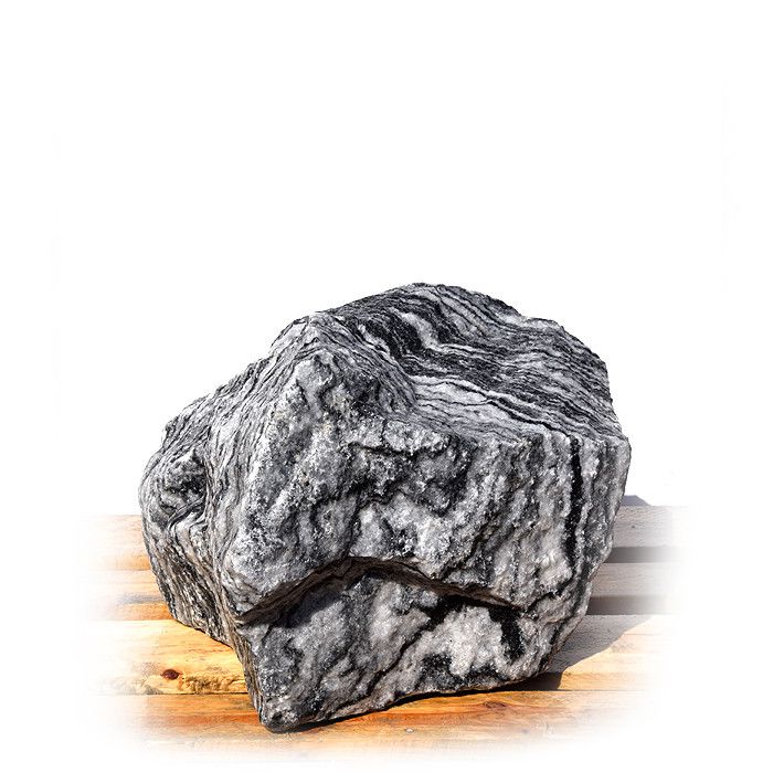 Wachauer Marmorist ein kristalliner Marmor, hat eine hell bis dunkel graublau gewolkte oder gestreifte Struktur, ist sehr dekorativ und durch seine Frostbeständigkeit besonders auch für die Anwendung im Außenbereich hervorragend geeignet. Die Farbnuancierung, die immer ein bisschen anders ausfällt, macht jeden Quellstein und Findling aus Wachauer Marmor zu einem Unikat.