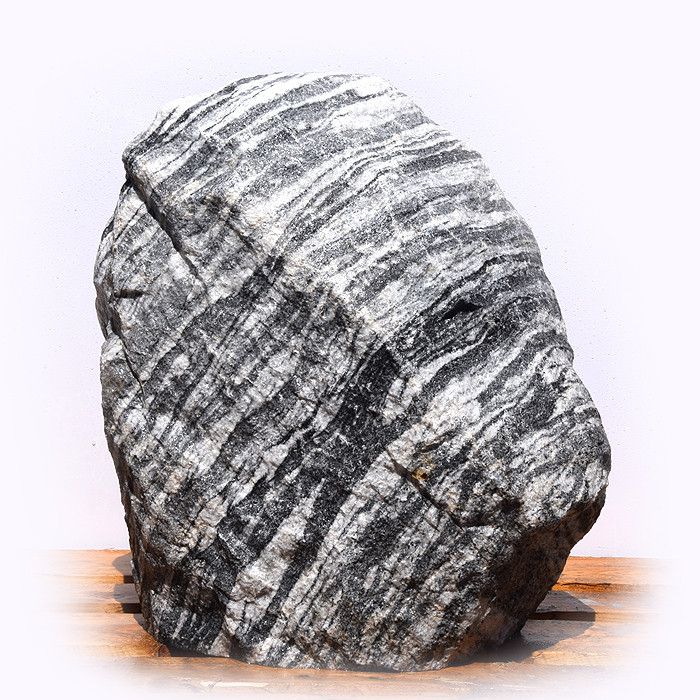 Wachauer Marmorist ein kristalliner Marmor, hat eine hell bis dunkel graublau gewolkte oder gestreifte Struktur, ist sehr dekorativ und durch seine Frostbeständigkeit besonders auch für die Anwendung im Außenbereich hervorragend geeignet. Die Farbnuancierung, die immer ein bisschen anders ausfällt, macht jeden Quellstein und Findling aus Wachauer Marmor zu einem Unikat.