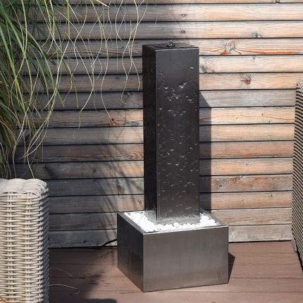 Terrassenbrunnen Edelstahl Hamburg 15S1Komplettbrunnen V4A Edelstahl Kubus Säule 30x30cm ab 80cm bis 120cm.