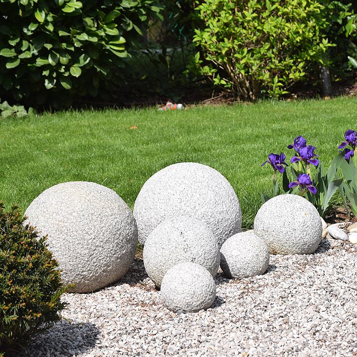 In aufwendiger Handarbeit hergestellte Steinkugel aus hochwertigem, wetterbeständigen Granit. Jedes Stück ein Unikat.