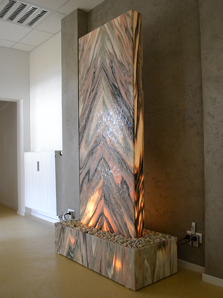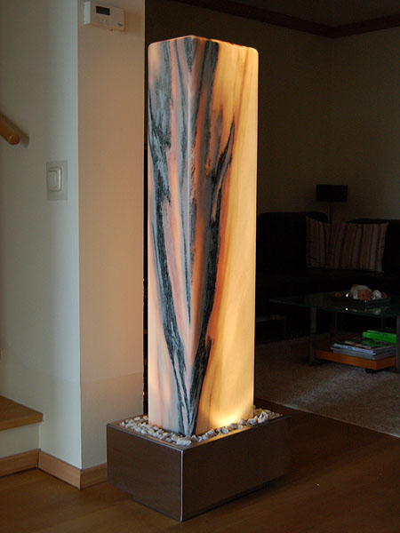 Wenn der Stein der Götter auf Licht und Wasser trifft, dann entsteht etwas so wunderbares wie eine Lichtbrunnen aus Sölker Marmor. Design und Funktionalität vereint in einem Wasserobjekt, das sich sowohl im modernen Wohnambiente, als auch in exklusiven Geschäftsräumen integrieren lässt. Verschiedene Ausführungen werden hier gezeigt, wobei Sie natürlich die Möglichkeit haben, eine Wasserobjekt speziell nach Ihren individuellen Wünschen im Bezug auf Material und Größe herstellen zu lassen.