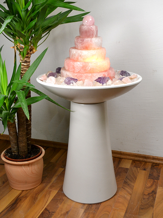 Ob klassische Edelsteinbrunnen mit Amethyst, Rosenquarz und Orange Calcit, oder kristalline Marmorsorten, wie Carrara, Sölker oder Onyx, ob kleine Tischbrunnen, Wassersläulen oder 2 Meter hohe Wasserwände - Das Licht macht jedes Wasserobjekt auch zu einem Lichtobjekt. Auf dieser Seite möchten wir Ihnen einige Impressionen zeigen und auch das Prinzip eines Lichtbrunnens näher bringen. Grundätzlich bieten wir Lichtbrunnen in verschiendenen Formen und Designs an. Es sind aber auch Maßanfertigungen sind möglich