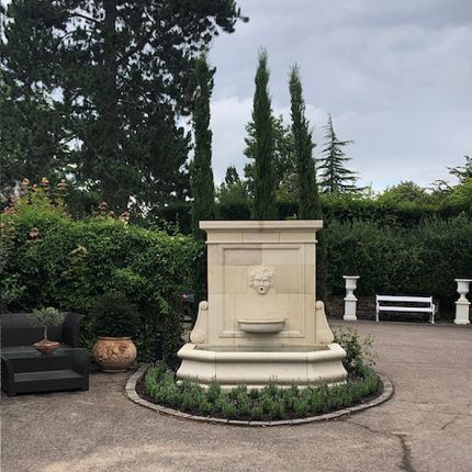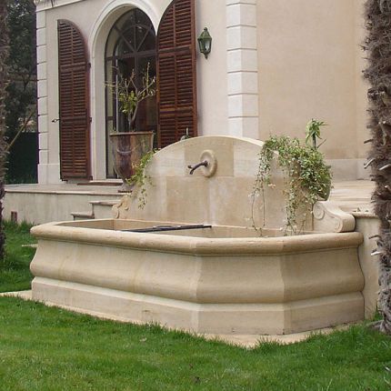Gartenbrunnen Wandbrunnen Naturstein MarquisZu 100% von klassischen Steinmetzen aus südfranzösichen Natursteinen hergestellt.