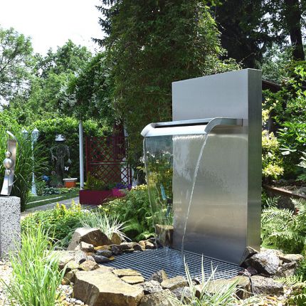 Terrassenbrunnen Wasserfall Edelstahl MagentaKompakter Wasserfall aus Edelstahl - Höhe 100, Standfläche 90x45cm