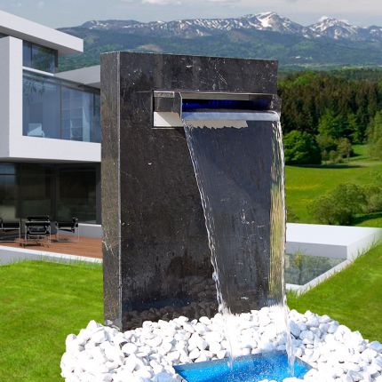 Wasserspaß der besonderen Art - Edelstahl Einbau Module werden Individuell gestaltet, sind durchdacht und funktionell, exklusiv und repräsentativ, für lang anhaltende Qualität. Ein natürliches und besonders angenehmes Wasserfallgeräusch bieten die Edelstahl Wasserfälle. Die Wasserfälle werden aus hochwertigem Krupp Edelstahl hergestellt. Ein Produkt made in Germany. Es werden verschiedene Modelle einzeln oder als Komplettset mit passender Wasserfallpumpe, wahlweise aus V2A oder V4A Edelstahl und mit LED Beleuchtung angeboten.
