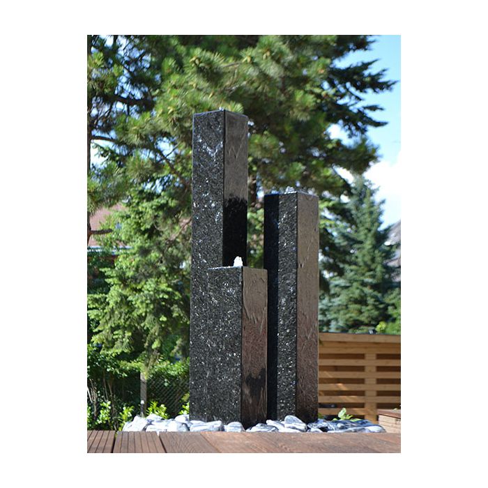 Granit Gartenbrunnen 3 Säulen Blue in the Night Q15