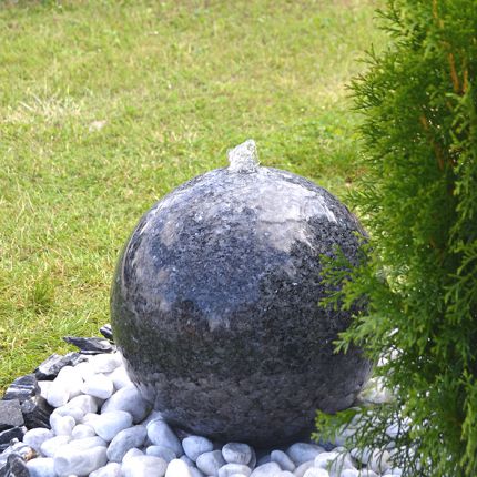 Gartenbrunnen Granitkugel Blue Pearl25Quellkugelbrunnen Granit Ø 25cm als Komplettset. Wahlweise mit LED Quellbeleuchtung