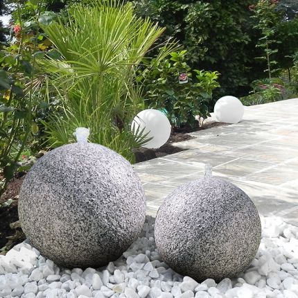 Gartenbrunnen Granitkugel Grey Moon LEDQuellkugelbrunnen Granit Komplettset - 3 Modelle erhältlich