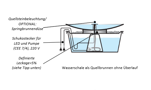 Quellbrunnen mit edler Wasserschale OHNE ÜBERLAUF