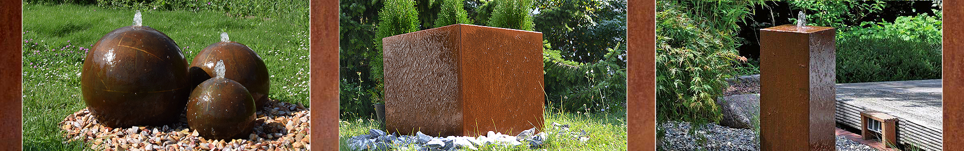 Sie suchen Quellelemente aus Cortenstahl? Kugel, Säulen, Würfel, Kubus für einen bestehenden Brunnen, oder möchten selbst einen Gartenbrunnen bauen? Hier finden Sie eine große Auswahl an Cortenstahl Quellenelementen. Kombinieren Sie aus dem umfangreichen Zubehörprogamm und kreieren Sie Ihr persönliches Unikat. Lassen Sie Ihren Ideen freien Lauf! Qualität made in Germany